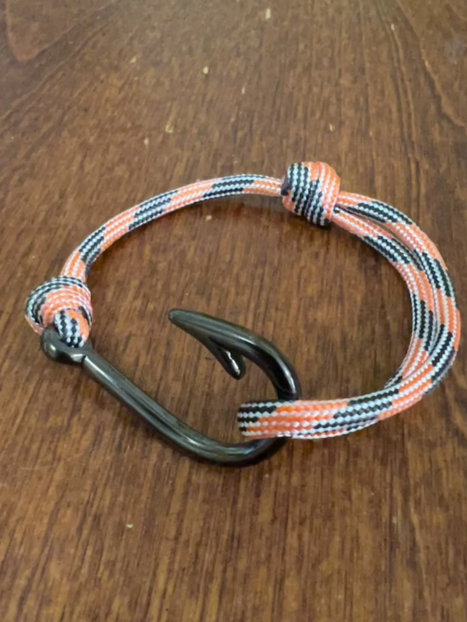 ​→ Wrap the paracord around your wrist until the hook meets the loop. Make adjustments to the sliding knot (the knot that makes the loop) until it is fully adjusted to your wrist size.