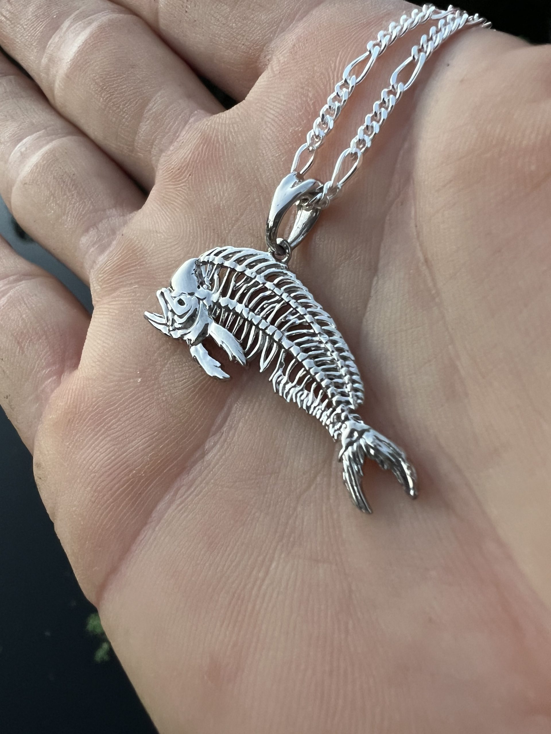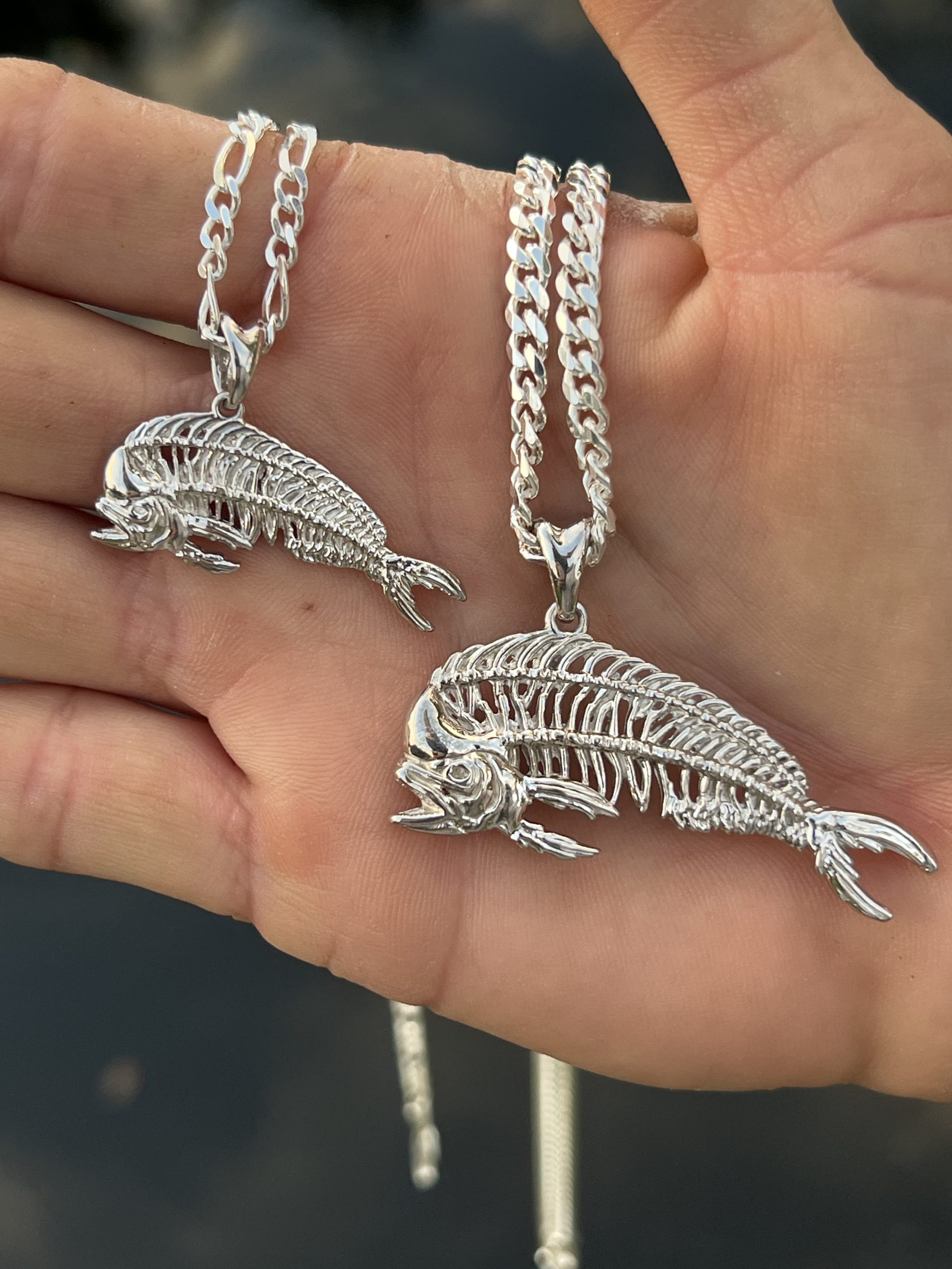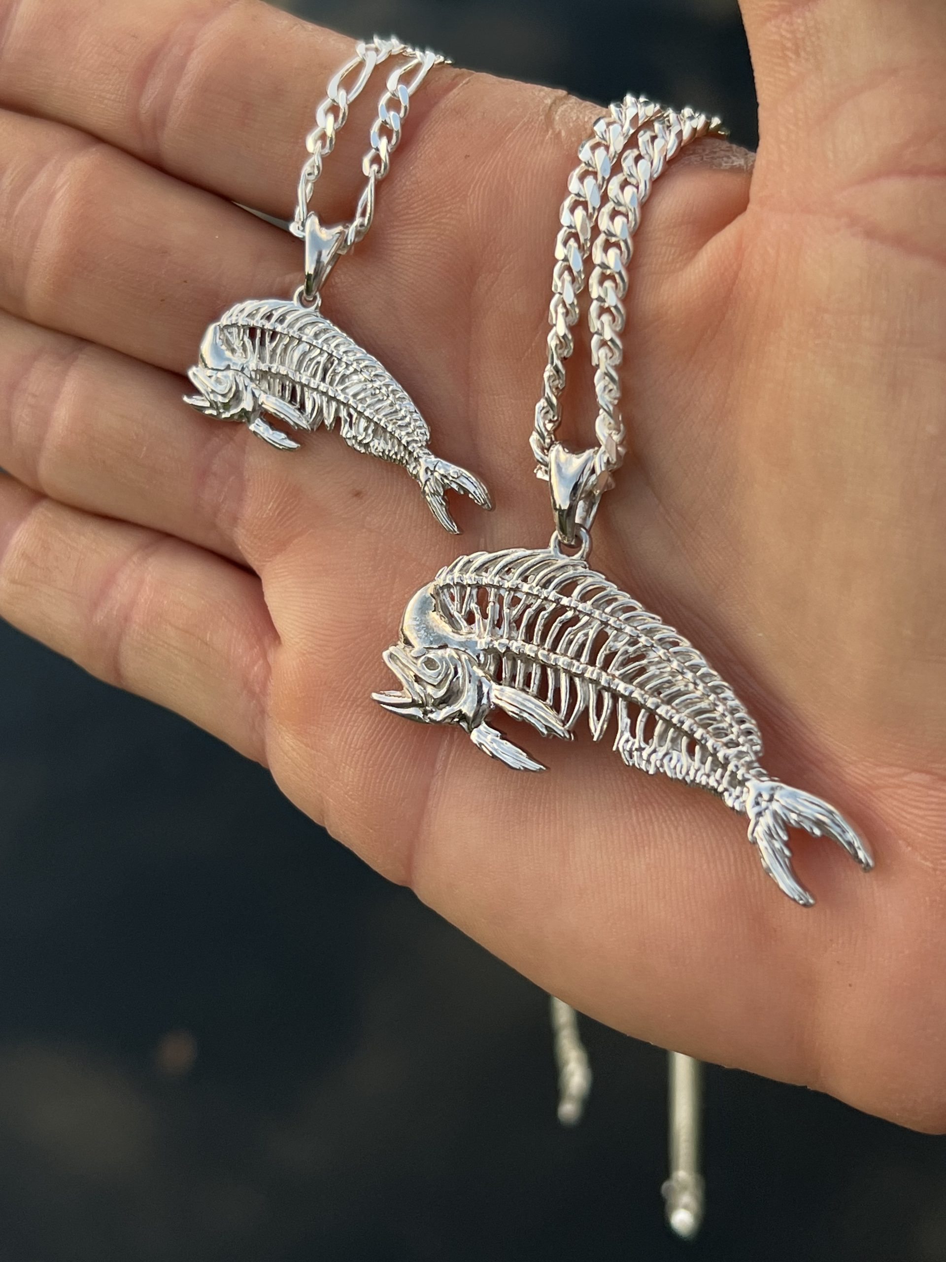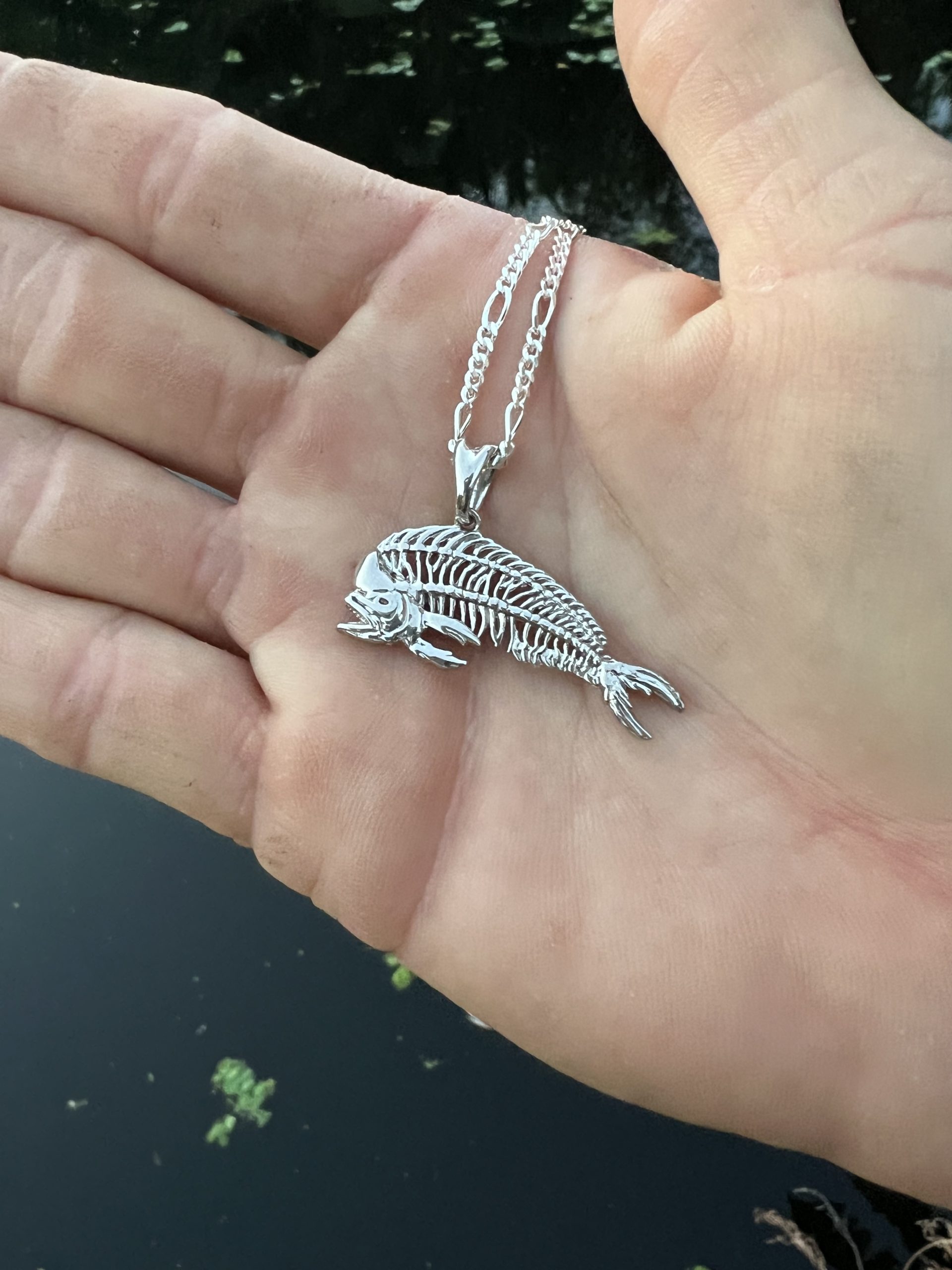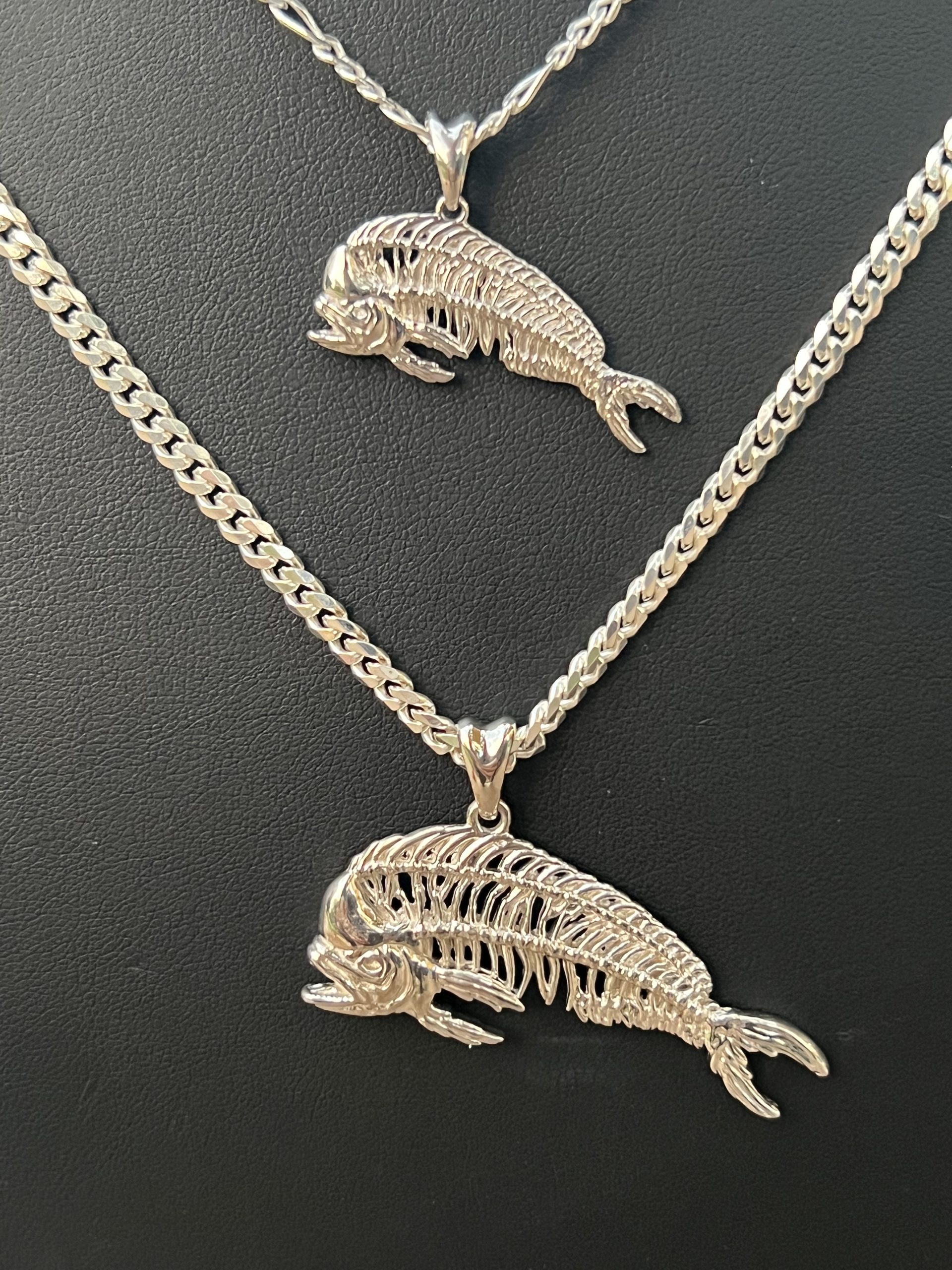 Custom Made UNISEX, Universal fit Sterling Silver Mahi Mahi Skeleton Pendant Necklace